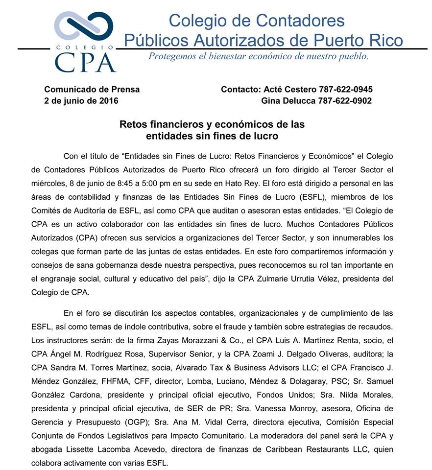 3. Certificación del Colegio de Contadores Públicos Autorizados de Puerto Rico indicando que está al día en su cuota de colegiación. Solicite esta certificación mediante correo electrónico dirigido a [email protected], y se le enviará por correo electrónico en formato y con firma digital.