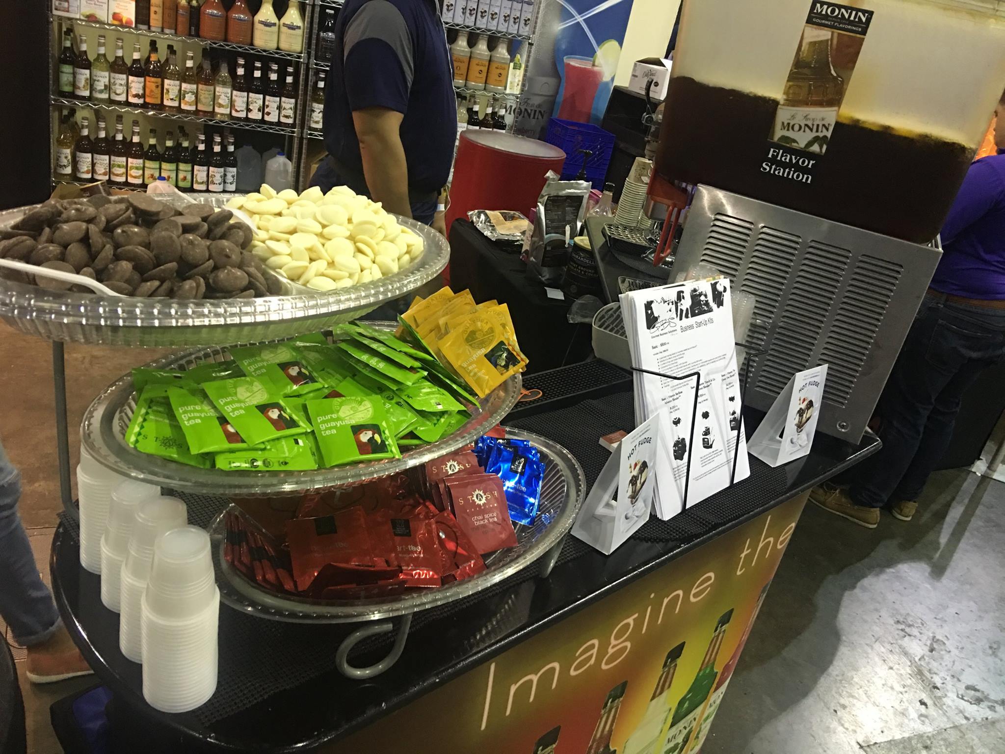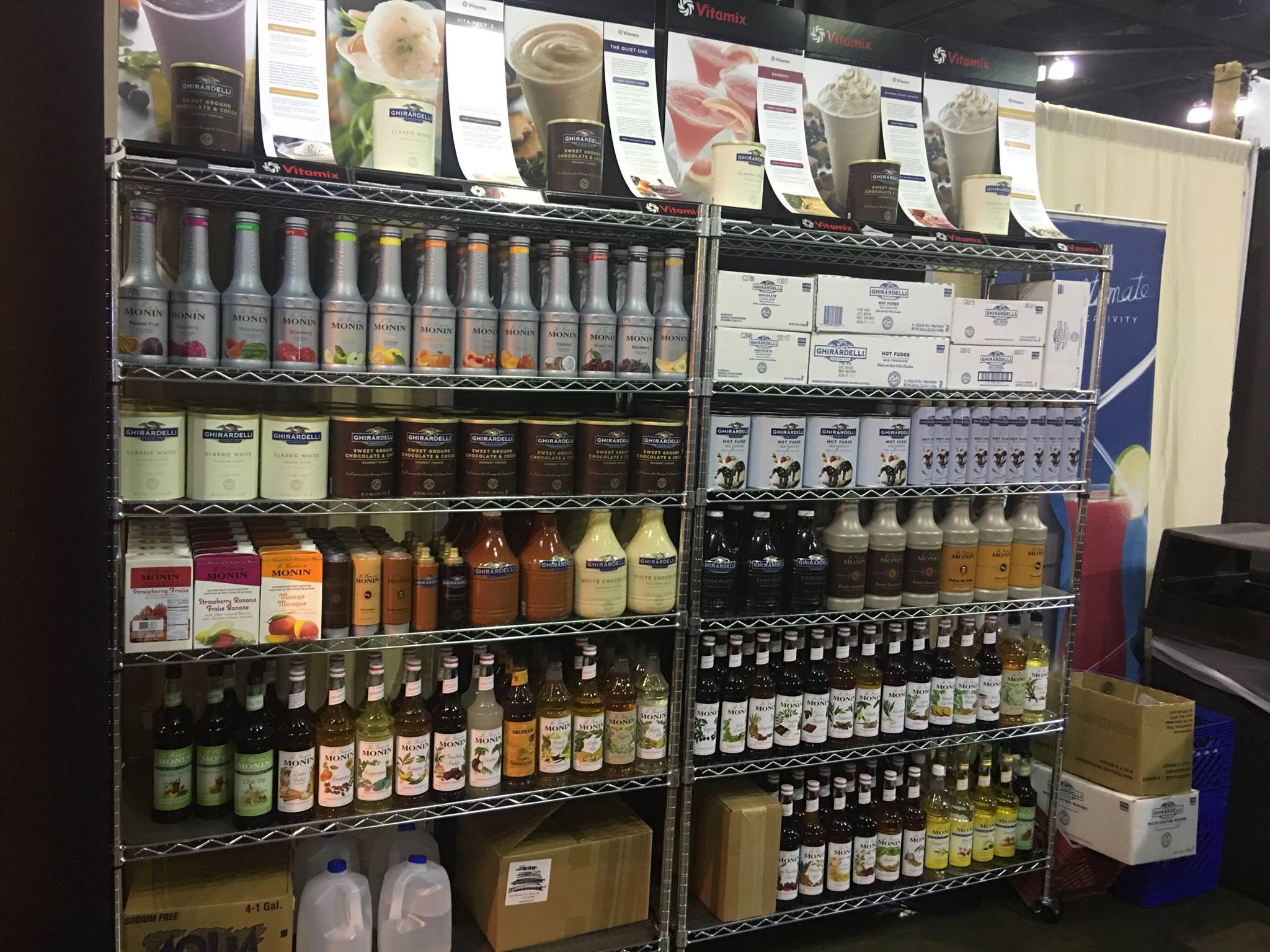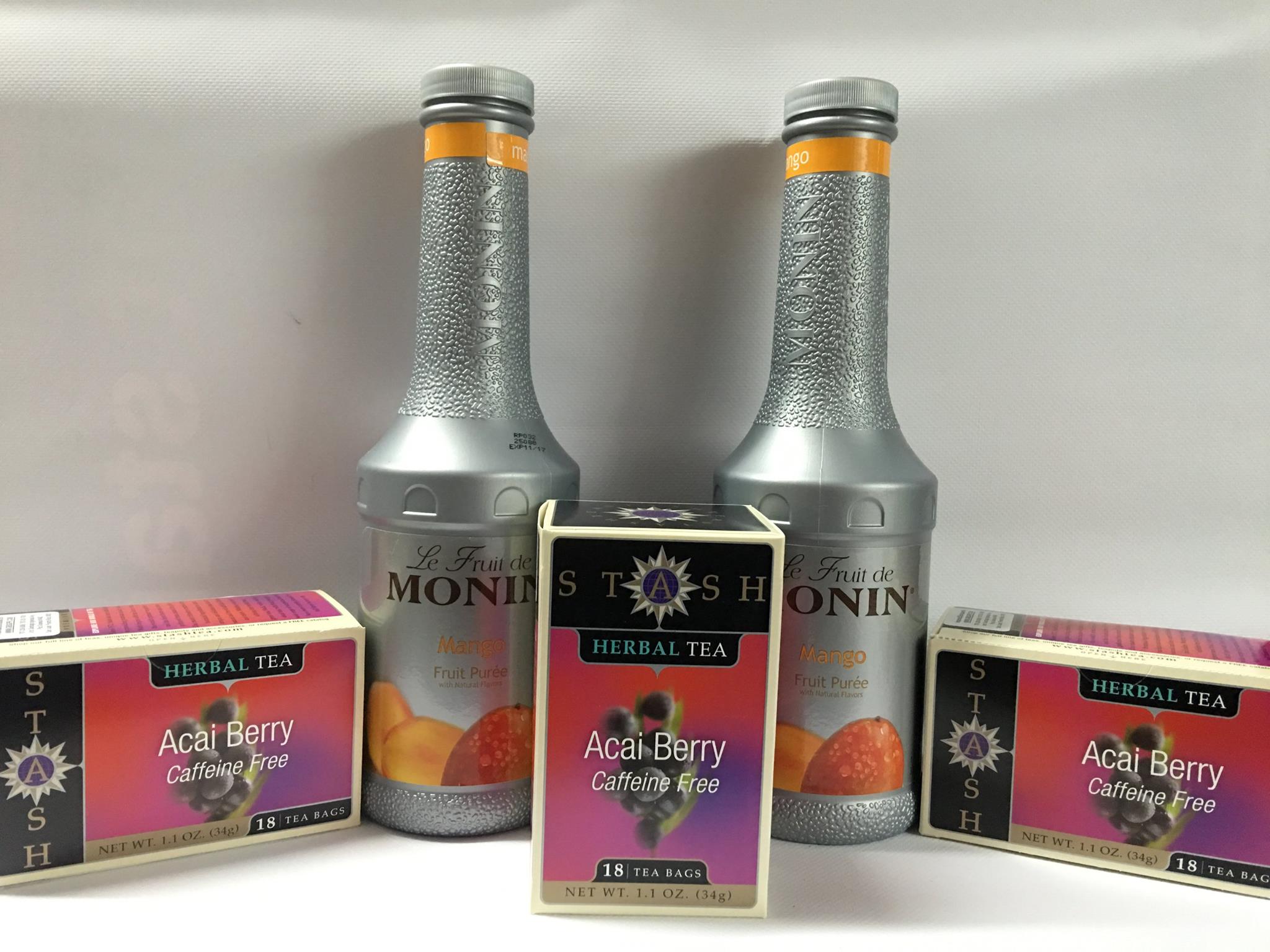 – Monin (endulzantes, purees, pulpas y salsas)- Ghirardelli (chocolates y salsas)- Stash Teas (sobre 30 diferentes)- Caffe D’Amore (bases en polvo)- KAV America (bases en polvo)- Wild Hibiscus (flores en sirop, extractos y té) – Cappuccine (bases en polvo)