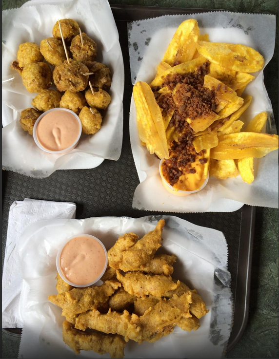 Al presente en el PLATANO LOCO hay alrededor de 23 platos preparados con este excelente farináceo, siendo el original el Sándwich de Plátano. Además, podrán conseguir Plátano burger, pizza de plátano, Parmesano de plátano, Sorullos de plátano, Plátano Empollao, Palitos de plátano, Ensalada de plátano. Taco de plátano, Plátano Wings, Sopa de Plátano y nuestro postre FLAN DE PLATANO. “Todavía nos preguntamos quien preparó el primer “TOSTON” o el primer amarillo en almibar, pero sí sabemos que para probar “TODO CON PLATANO” el mejor pueblo es AGUADA, donde se encuentra “ EL PLATANO LOCO” Visítanos y además disfruta del Nuevo y Exótico concepto, podrás apreciar unas vistas espectaculares. Jorge Muñoz, Coqui Feliciano y atentos empleados les esperan.