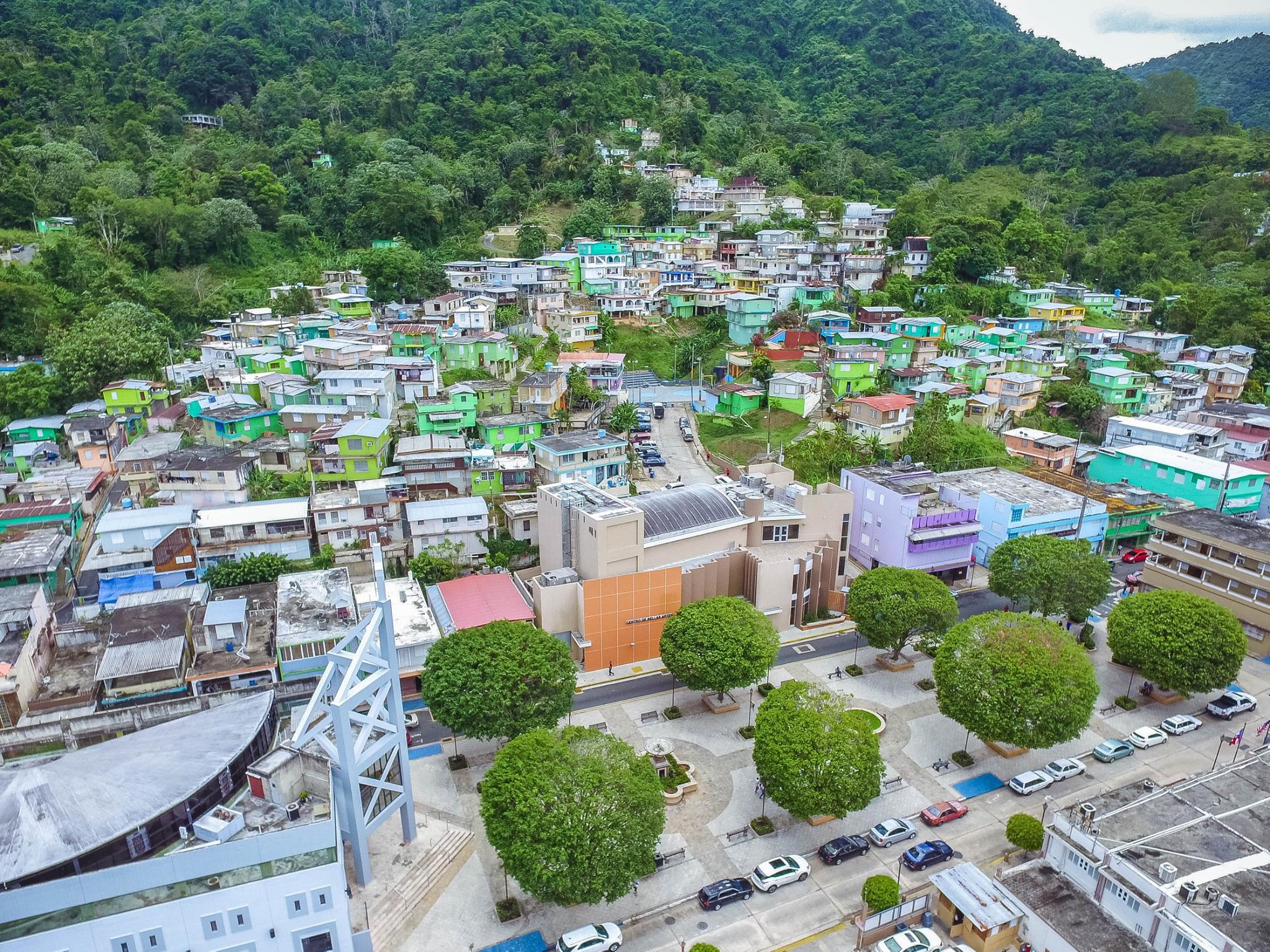 El sistema hidrográfico de este municipio se completa con el lago o embalse de La Plata, situado al norte del municipio, ocupa parte de la superficie de los barrios Guadiana y Achiote. El recurso Mineral más abundante fue el oro, que aparece asociado a otros minerales. De hecho, el río Mavilla fue el más pródigo en oro durante la colonización de Puerto Rico, cuando los indios eran obligados a lavar sus arenas en busca de las codiciadas piedras.Tradicionalmente los principales cultivos han sido el café y el tabaco. Hoy también se cosechan frutos menores y se explota la ganadería, especialmente el ganado de leche. Cuenta con varias fábricas, la mayoría de ellas de prendas de vestir.