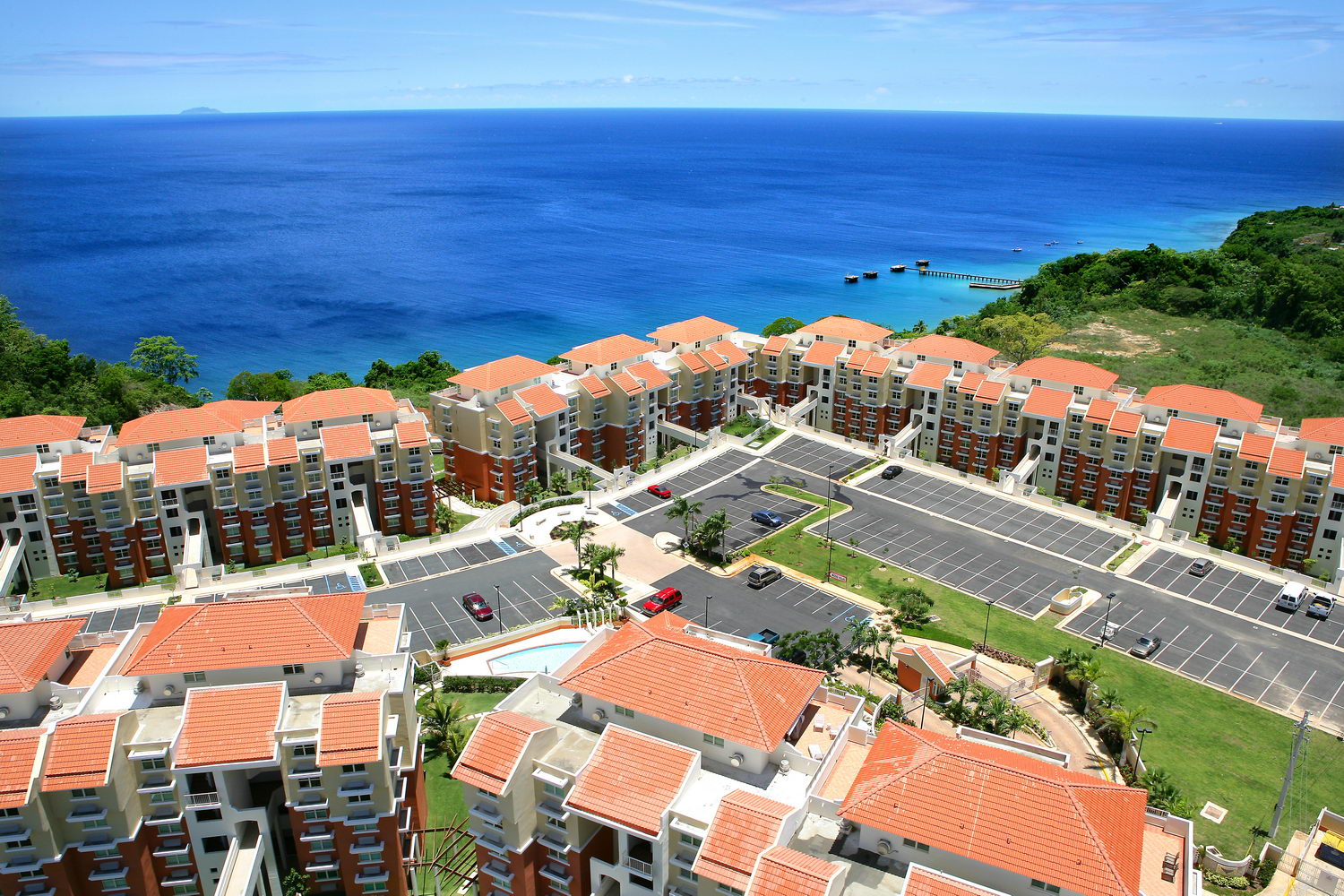 We offer a luxury spacious two bedrooms, one studio (media room), two full baths Mediterranean Style Condo in a residential / tourist development known as Puerta del Mar. Our condo experience provides a wonderful atmosphere with contemporary decor and comfortable, clean, and fresh bedrooms. Puerta del Mar is sitting approximately 300 ft. above sea level, over world’s famous Crashboat Beach, a popular sports beach and dive spot. Puerta del Mar ‘s recreational facilities boost breathtaking views of Desecheo Island, the Mona Passage, Aguadilla Bay and the best sunset in the Caribbean. One of the two swimming pools in Puerta del Mar is an infinity pool; from here a spectacular ocean view will stimulate your senses. Residents and guests enjoy gazebos, sundecks and miradores from where it is rumored that whales can be observed in their yearly migration. Puerta del Mar is only a five minutes drive to one of the best beaches of the Caribbean «Crashboat Beach» and is only ten minutes drive to the Rafael Hernandez Airport (BQN) in Aguadilla, PR. Puerta del Mar ‘s privileged location and exquisite design make these condos a West Coasts Jewel.